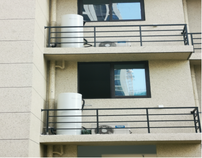该项目小区(忆江嘉苑三组团)共9幢,总安装数量844台中新康都品牌150L空气能热水器。